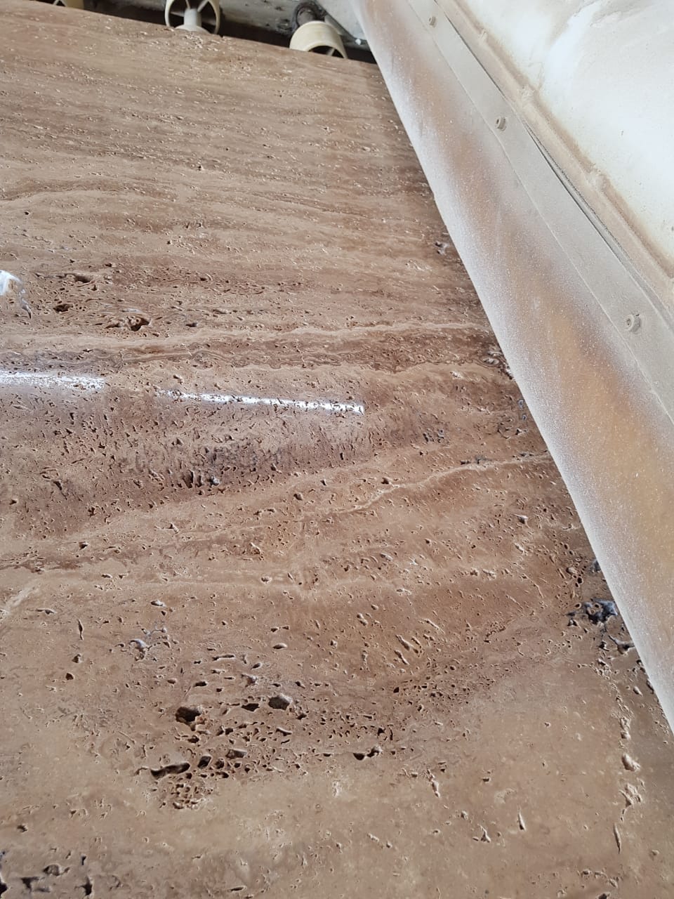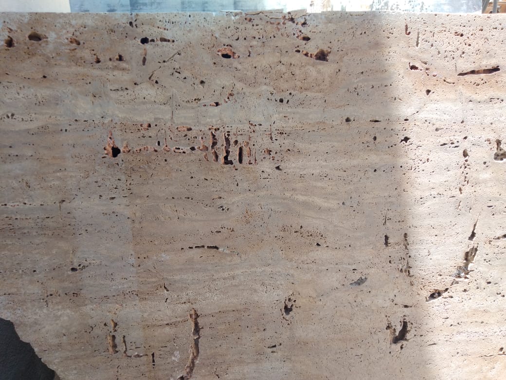 Surface finishes for Travertine : Polished, unpolished, honed, brushed, acid, sandblasted, bush hammered, tumbled, striped, split face